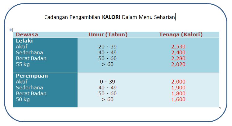 Gadismerahjambu Kalori Makanan