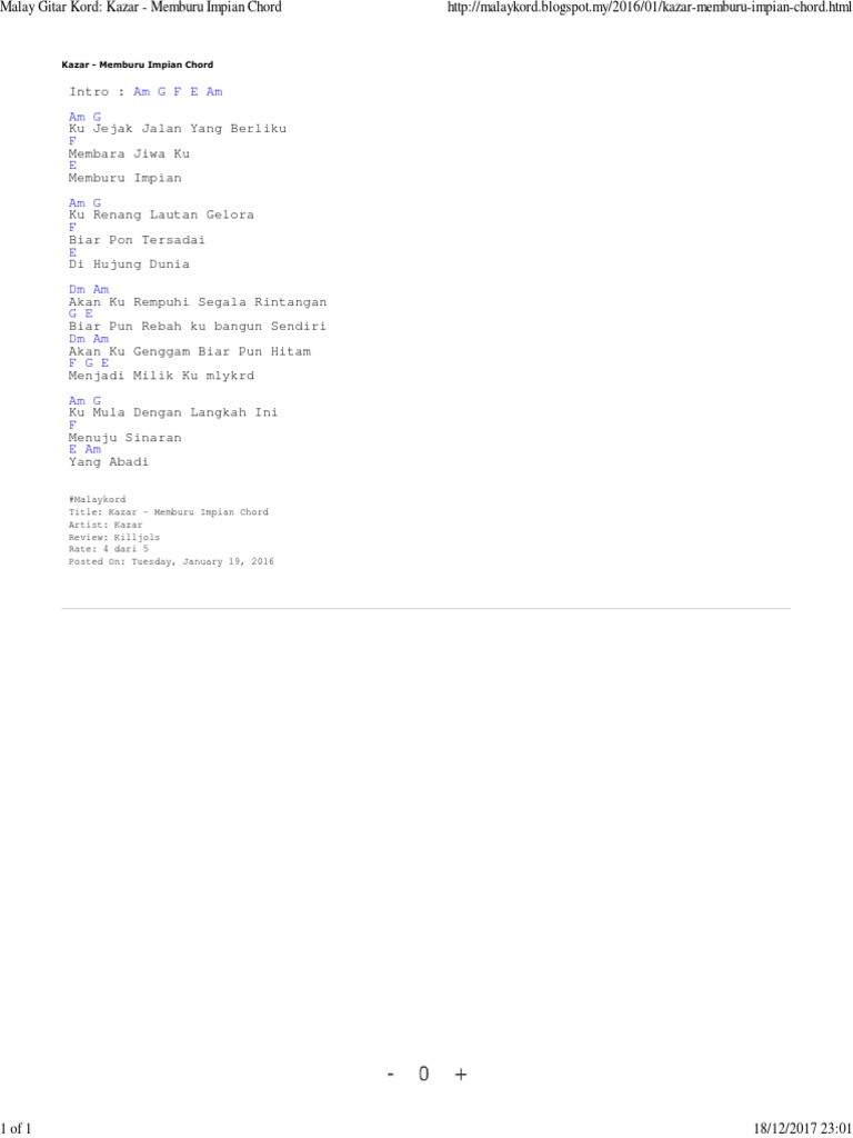 Kazar Lirik Lagu Memburu Impian Gitar Kord Melayu Malay Guitar Chords Archive