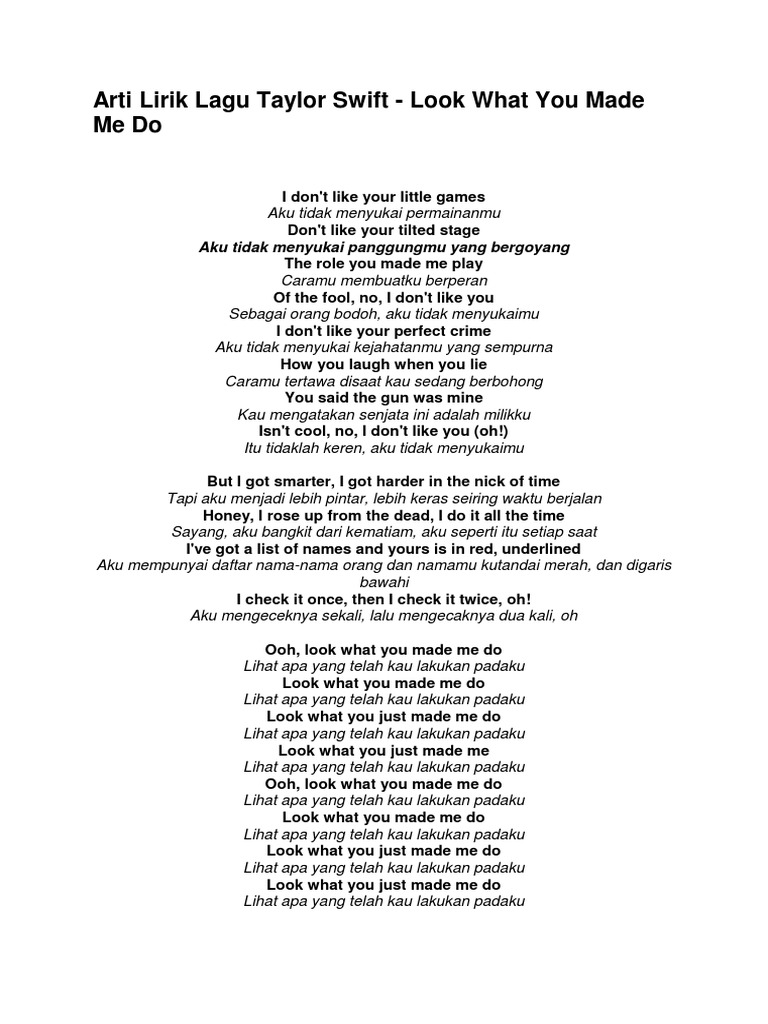 Lirik Lagu Look What You Made Me Do Taylor Swift Wattpad