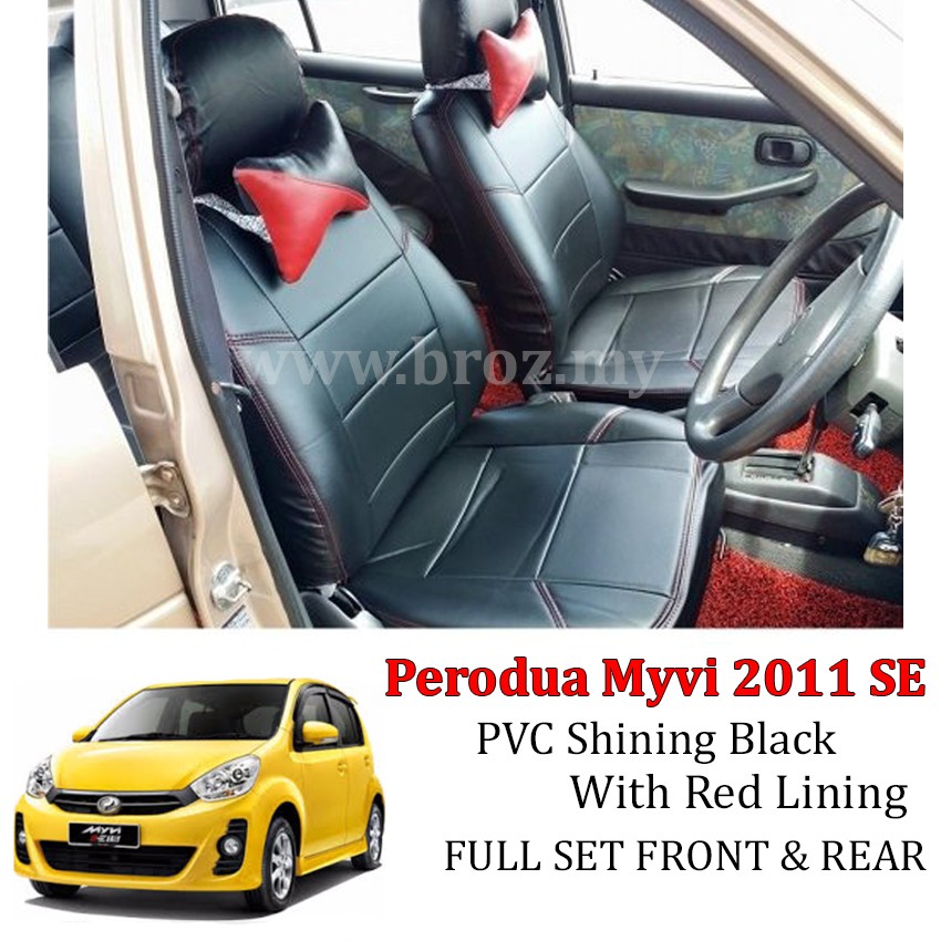 Car Seat Cover Pvc Shining Black With Red Line Perodua Myvi Lagi Best Cushion Cover Shopee Malaysia