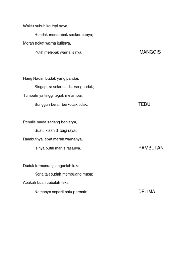 Pantun Sms Teka Teki Kata Mutiara Pantun Dan Puisi Cinta Romantis Teka Teki Buah Sms