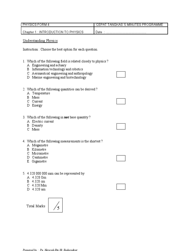 Physics Form 4 Chapter 1 Exercise