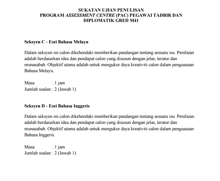 Program Assessment Centre Pac Pegawai Tadbir Dan Diplomatik Gred M41